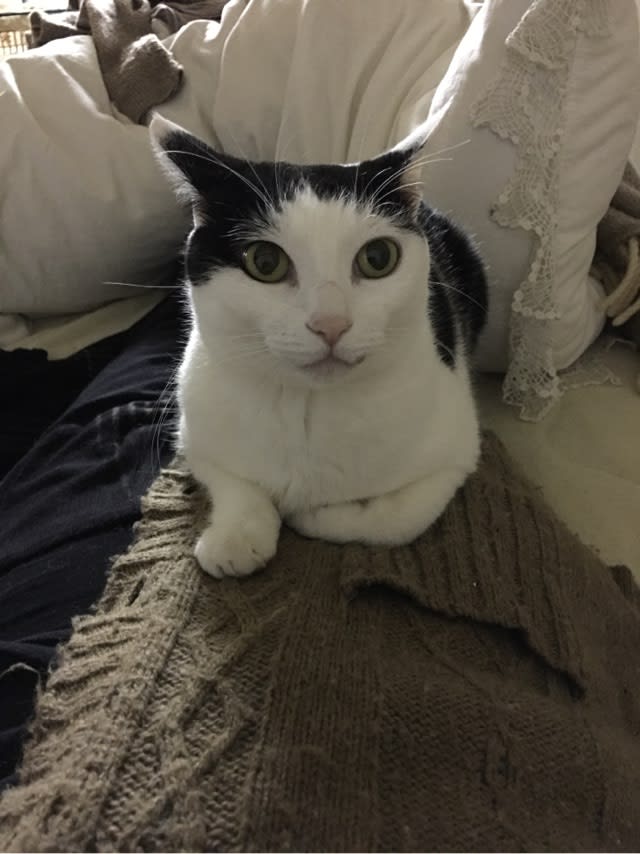 写真は、我家にきて7年過ぎたますこが初めて自分から寝転んでいる私の上に乗ってきた瞬間。