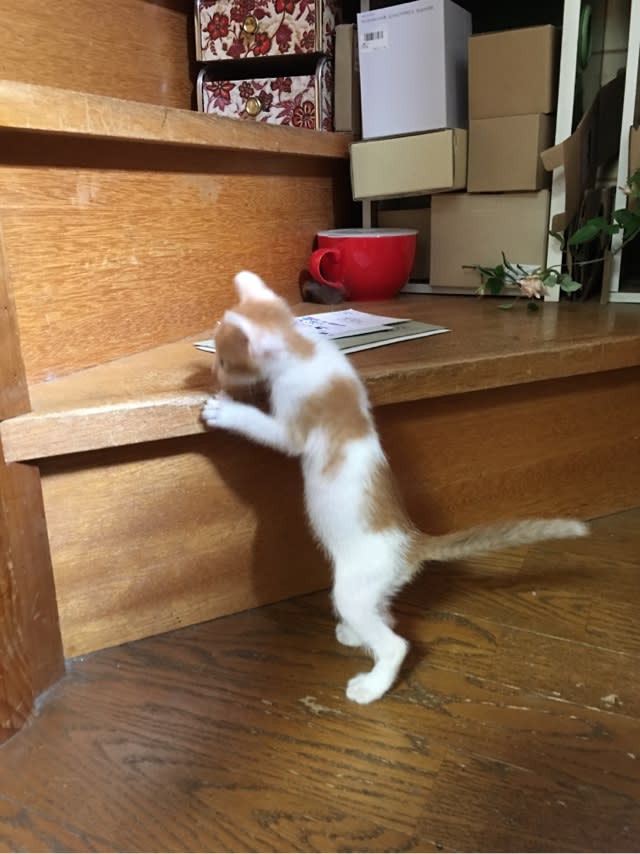 2階にも興味津々、でも完全な駆虫と感染症の有無がわかってからね。