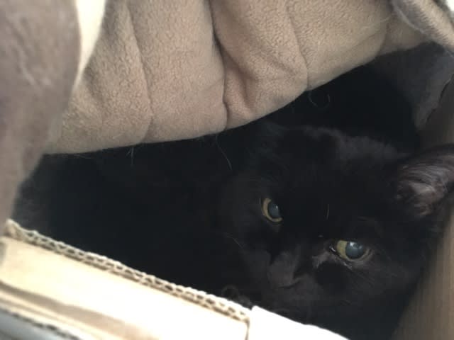 今年はこれでどう?とトンネルタイプの爪とぎを入り口用に設置してみた。