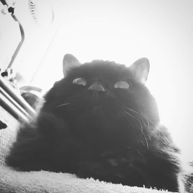 最近、朝のストレッチをしている間ドレッサーの椅子の上に鎮座していらっさる。