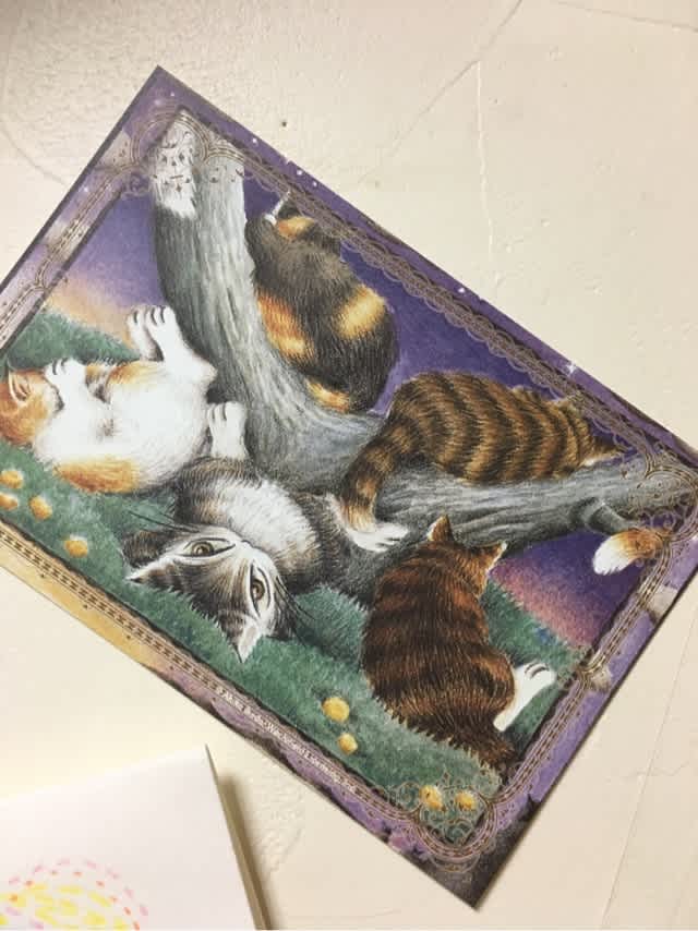 これは「猫のなる木」という古い絵のポストカード。