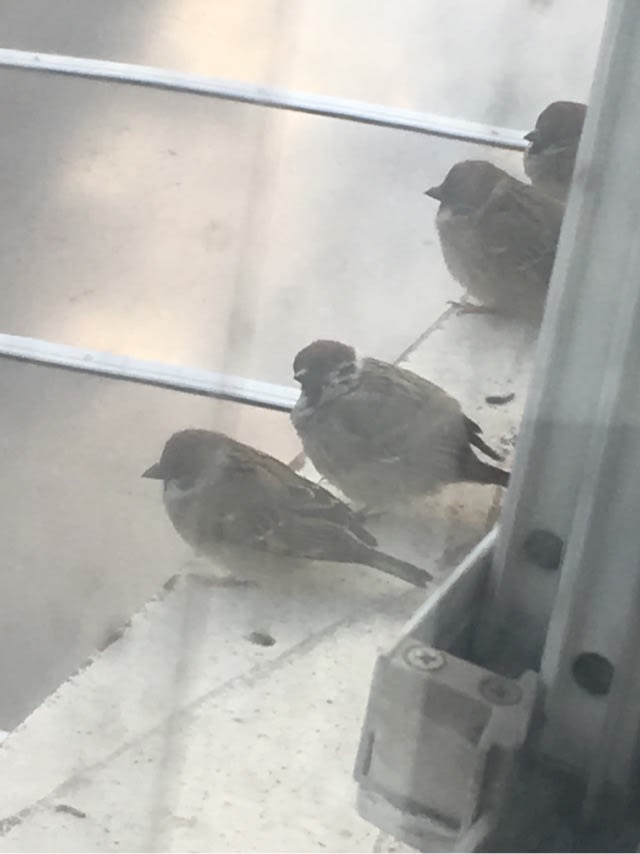 今日は空気が冷たくて、スズメたちもふくらむふくらむ。