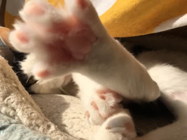 と呼ぶと、思いっきり足の肉球を開いて挨拶してくれるますこはん。