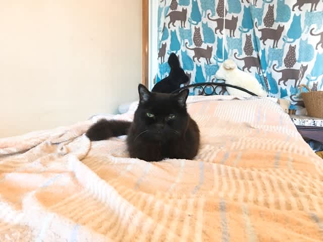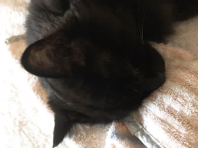 ベッドの上で寝ている時は、掃除機かけても、近づいても、寝ています