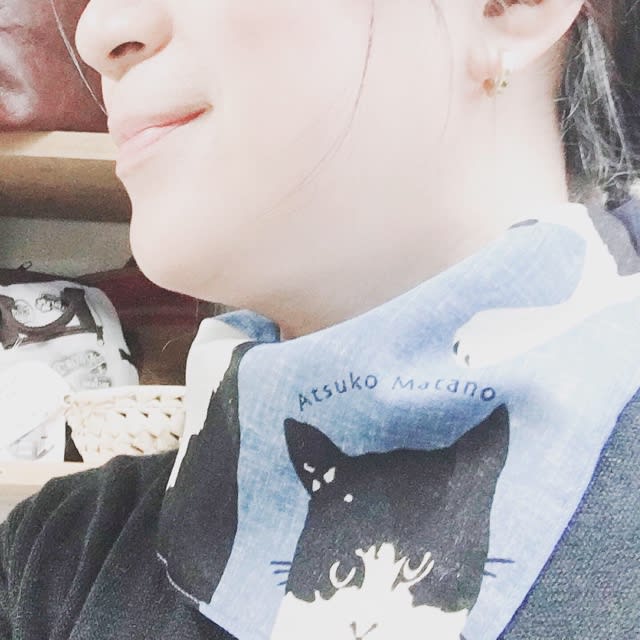 昨日入荷したAtsuko Matanoのハンカチ、白黒の配分がちょと違うけどますこしゃん風。