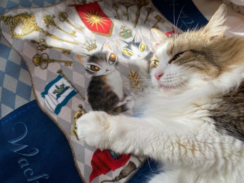 ポリエステル製なので、猫ちゃんのごはんマットにも。