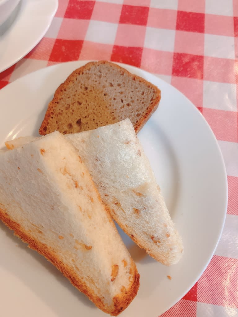 パン、黒いのは黒糖化と思いきや、結構塩っからい。