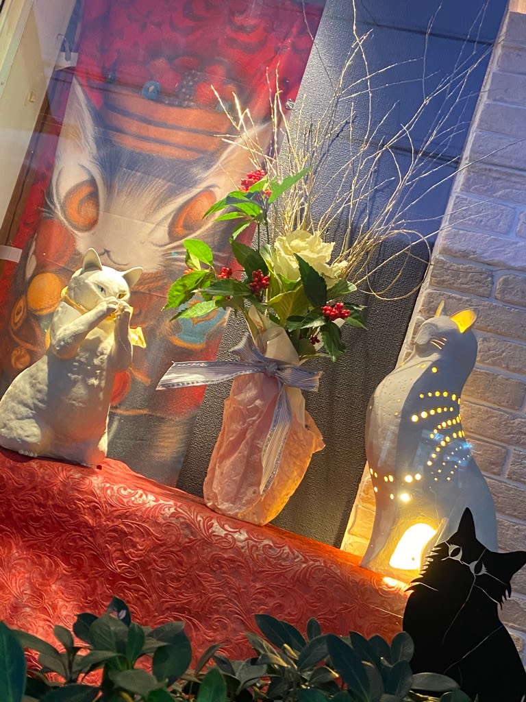 その日、カサデチャさんの店前で売っていた花を飾って、本年の営業終了。