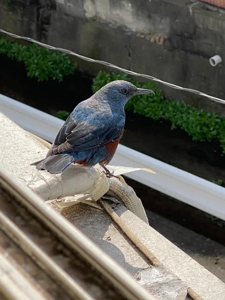 毎朝ごはんを食べにくる雀に混じって、イソヒヨちゃん。