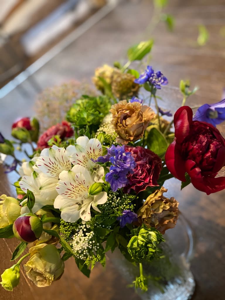 持ち帰った時はまだ硬かったのに、もうほころび始めた深紅の芍薬がきれい~