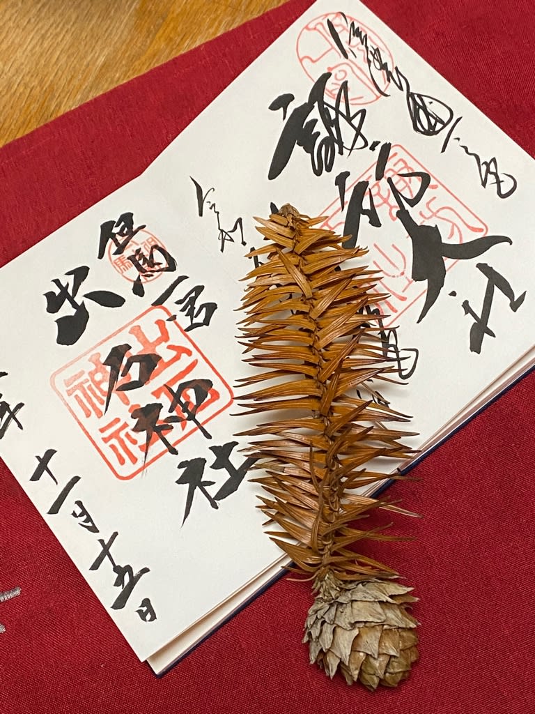 ご朱印をもらった社務所でお許しをいただいて、松ぼっくりをお土産に。