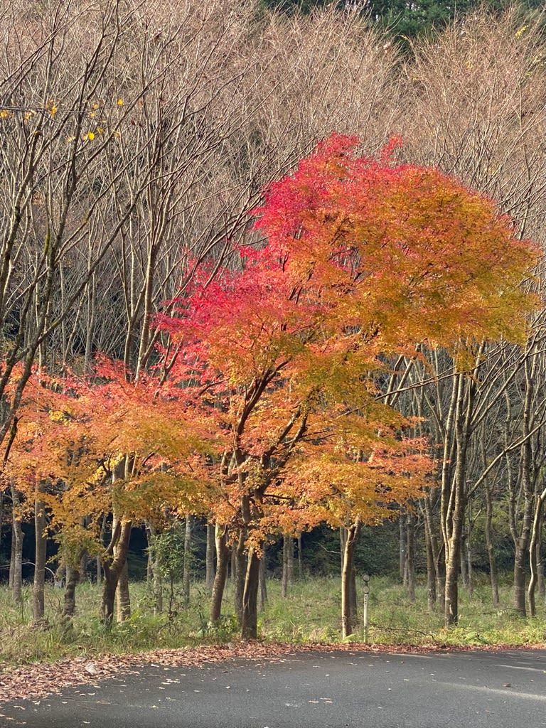 対向車が来ないか、顔を引きつらせてハンドルを握るダンナを尻目に「秋のドライブって感じだねぇ」とか言ってたら突然葉っぱの雨が。