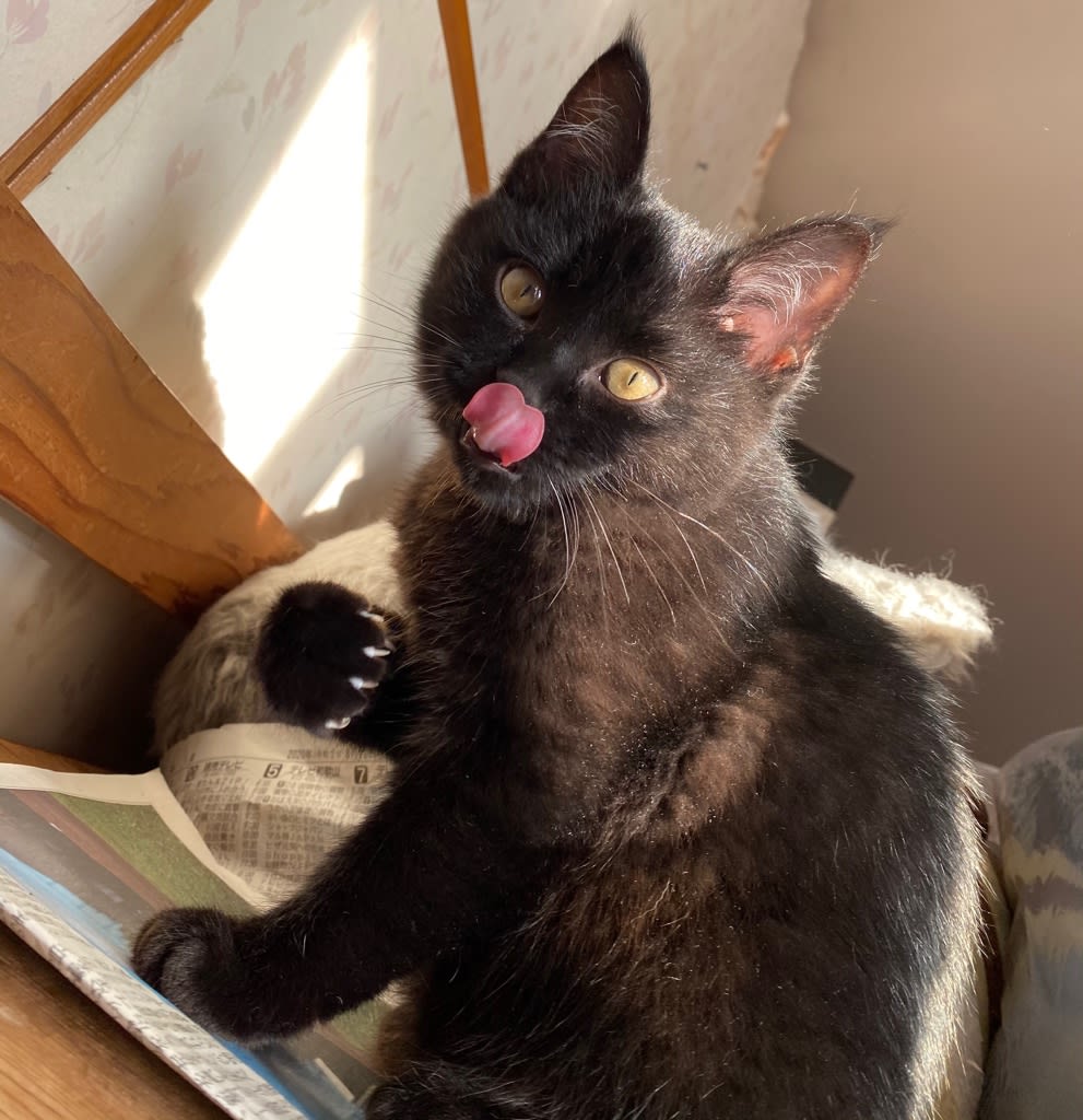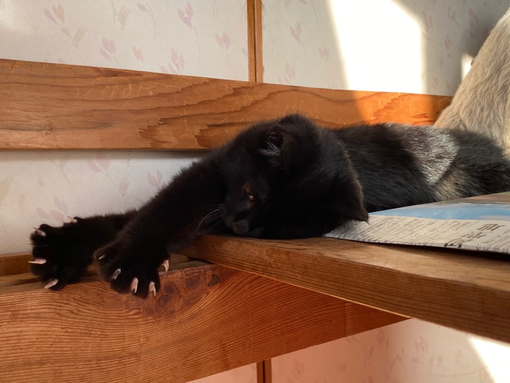 ぼちぼち慣れてきたけれど野良生活が長かったますこにとってはたとえ子猫でも「縄張りを荒らすヤツ」なのでしょうね。なかなか手厳しいです。