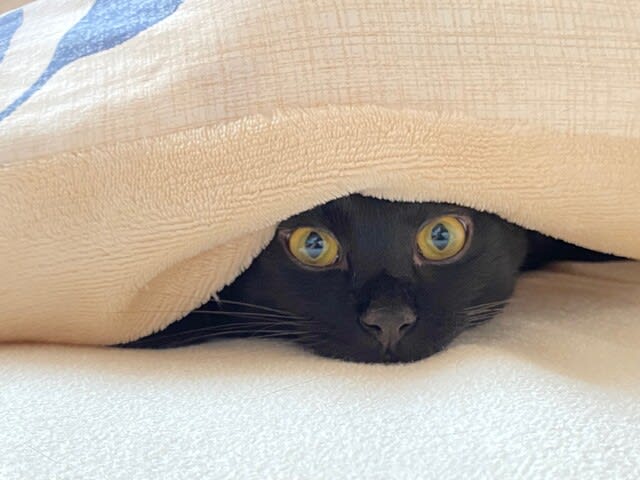 今朝、ストレッチをしているとなぜか布団に潜り込んでいたえびす