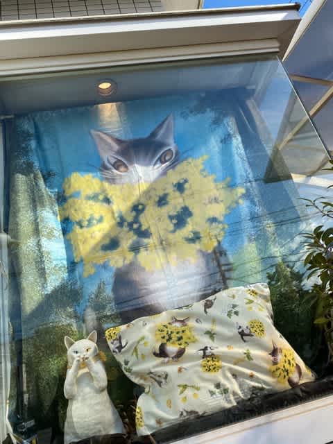 昨日入荷した掛け布団カバーがとても綺麗だったので出窓に飾りました。