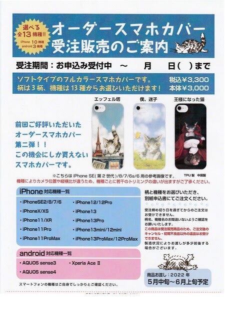 お手持ちのスマホ用のカバー、お好きな柄でオーダー出来ます!