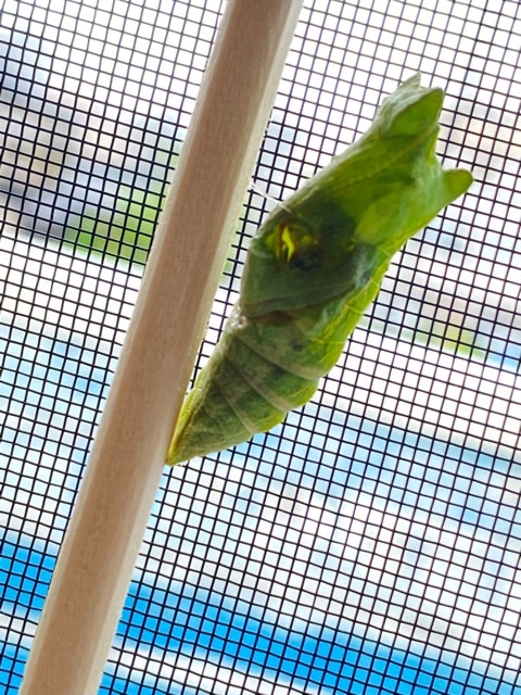 サナギになるまではまるまるとしたあおむしだったのになぁ。