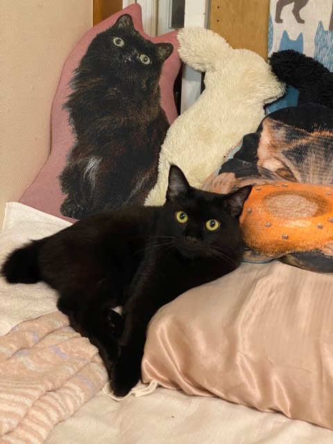 今日は午後から仕事が終わって上がるまで、私のベッドで寝ていた黒い猫。