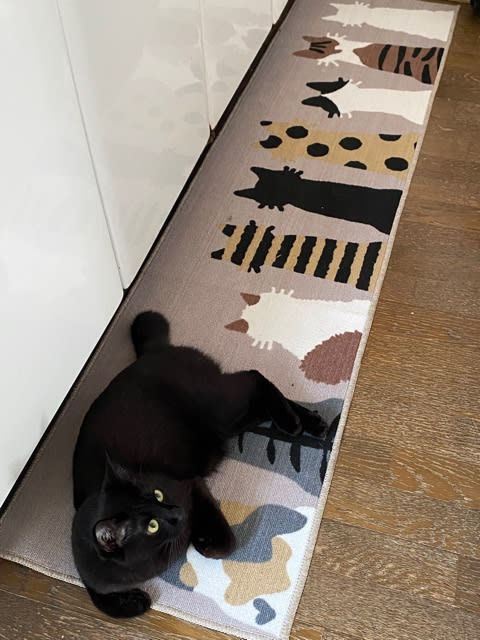 えびすは男のコだからか、新しいモノは全部自分のモノらしくて…このキッチンマットも。。。