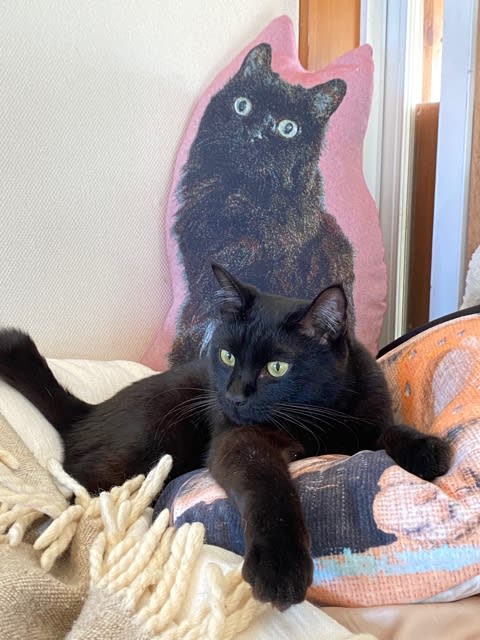 まだうちに来たばかりのころ、KILIのクッションの前で