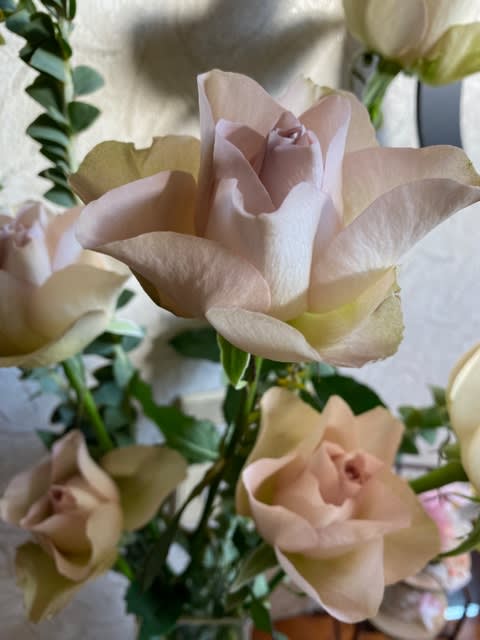 甘過ぎない、ピンクか???みたいな曖昧な色の薔薇。