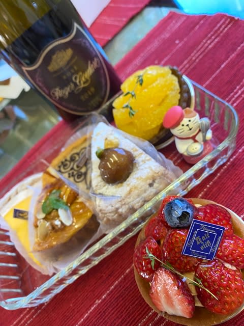 やっぱやーめた!と帰ってきたら美味しそうなケーキとピンクのシュワシュワが届いてた!!