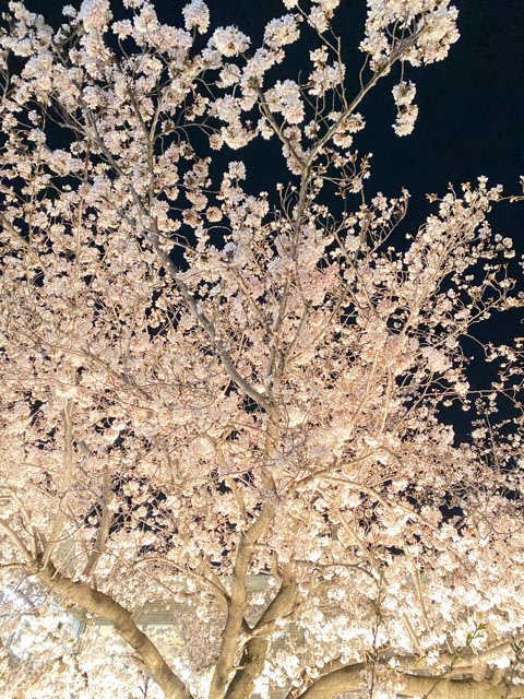 夜になって近所の夜桜見物に。