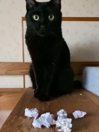ほんとはもうちょっとたくさんの紙屑ボールが…)