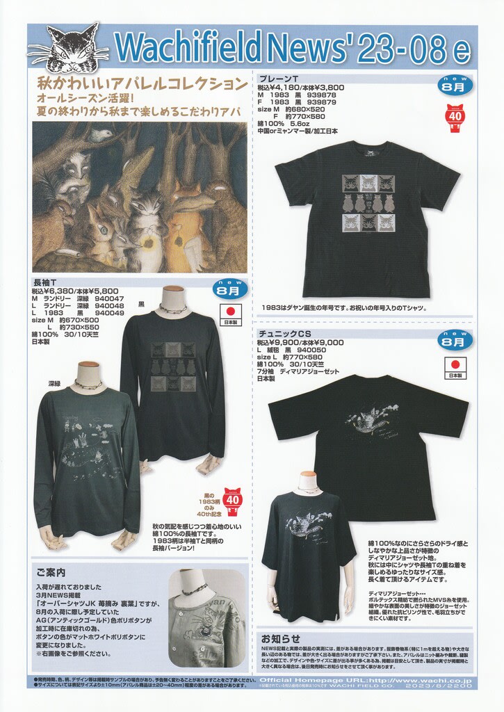 8月のわちふぃーるどカタログが届きました。