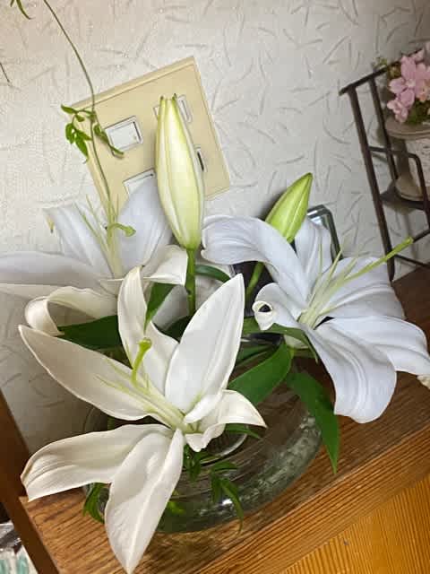 ゆりこはん、頑張って咲いています。5輪、咲くかな?