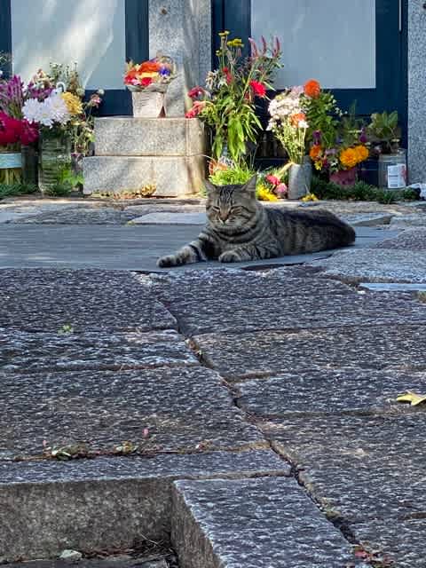 レストガーデンには猫がいて、お墓参りにくる人たちにオヤツをもらっています。