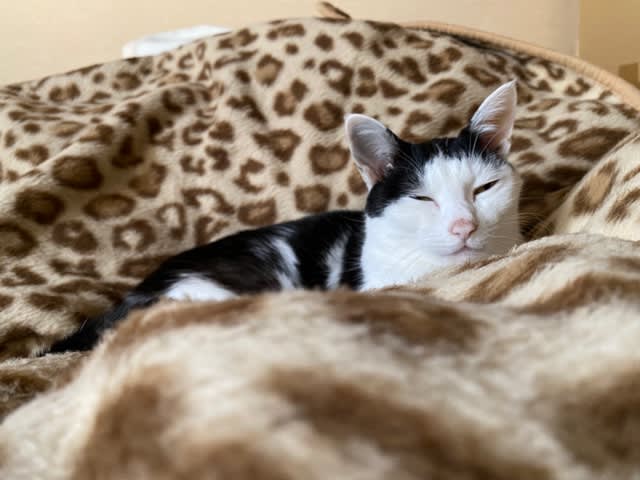 ますこさんはご高齢なのでぬくぬくしないとね。