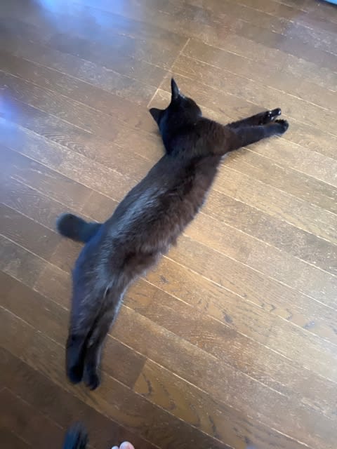 11月というのに暑いから、えびすはびよ~んと寝てる。
