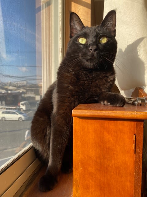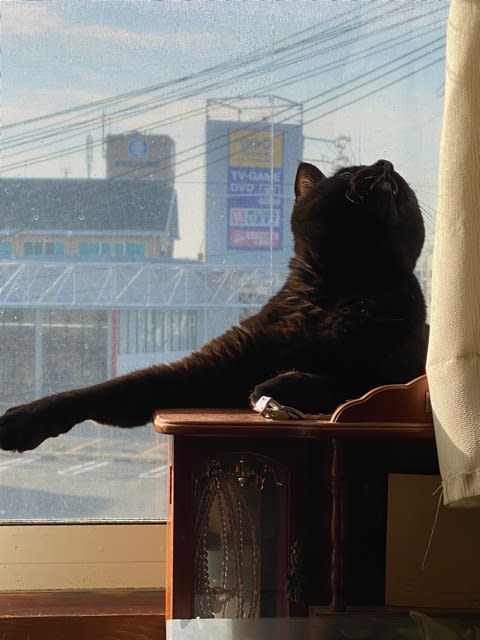 朝のボクは、まったりと空を見上げ(上に鳩がいる)