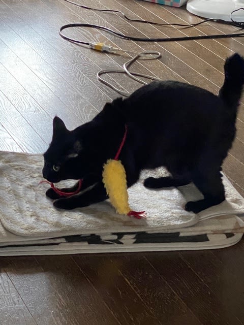 えび天咥えて走ってた。