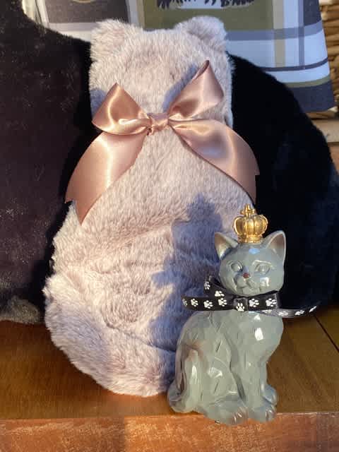 残念ながらうちにあるロシブルのぬいぐるみはブルーアイだし、スコティッシュならグレーでゴールドアイだけれど、丸顔過ぎてイメージが違うかも知れません…とお返事を差し上げたら…ぬいぐるみはあきらめて、これをお願いします、と注文をいただきました。