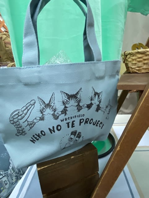 Tシャツは鮮やかなグリーン、トートバッグはブルーグレーかな。