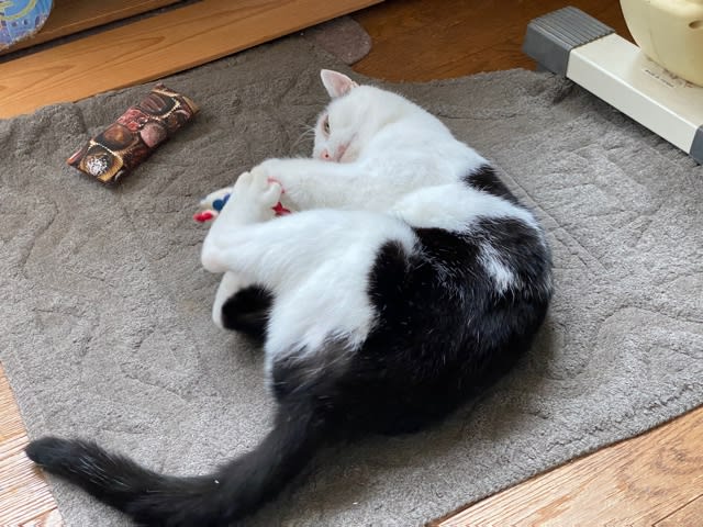 これは、昨日の大雨で肌寒く、残りの灯油でファンヒーターを楽しむますこ。