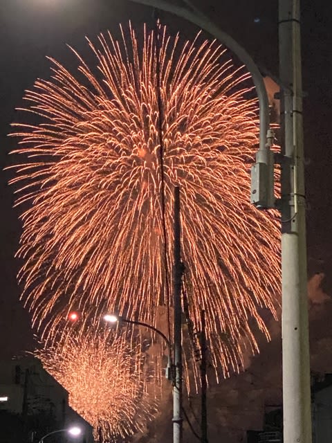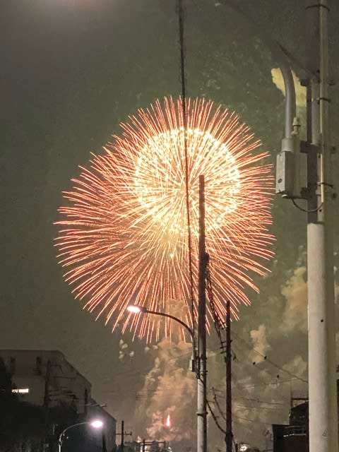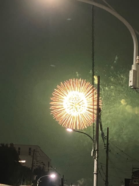 21日に「港まつり」が開催され、少し歩いてiphoneで撮った花火。