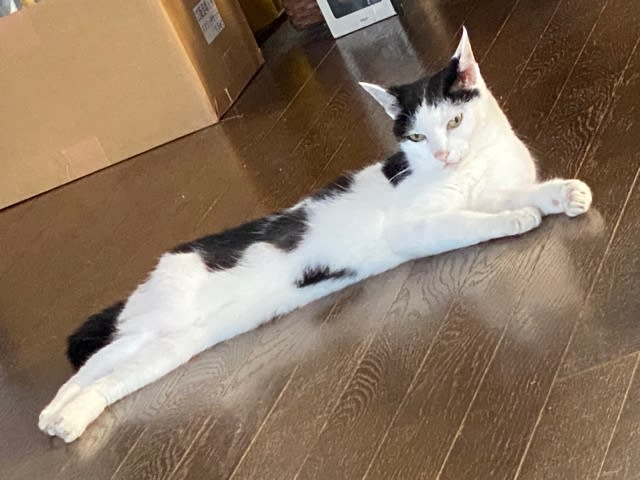 さすがのますこさまも、この気温は「暑い」と感じるのか床の上。。。