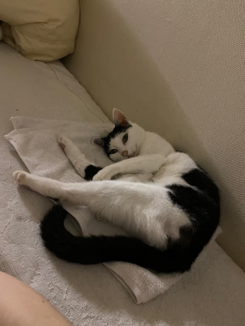3キロもない、小さな身体で機嫌よく丸まりん。