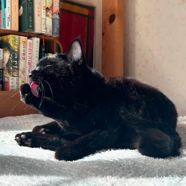 秋らしく下がったので、いかめちえびすは毛繕いにいそしむ朝。