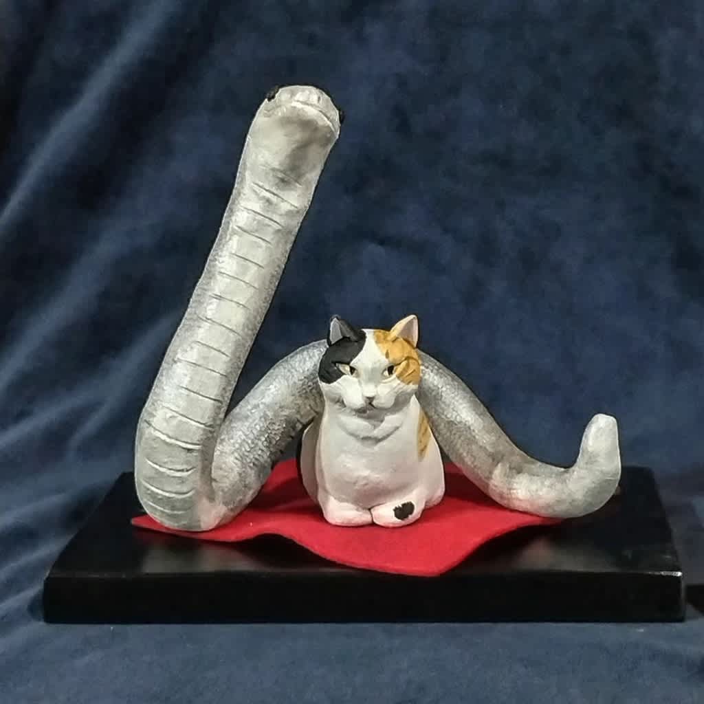 猫の柄(10柄)とヘビの色(3色)はお好きに組わせていただけます。