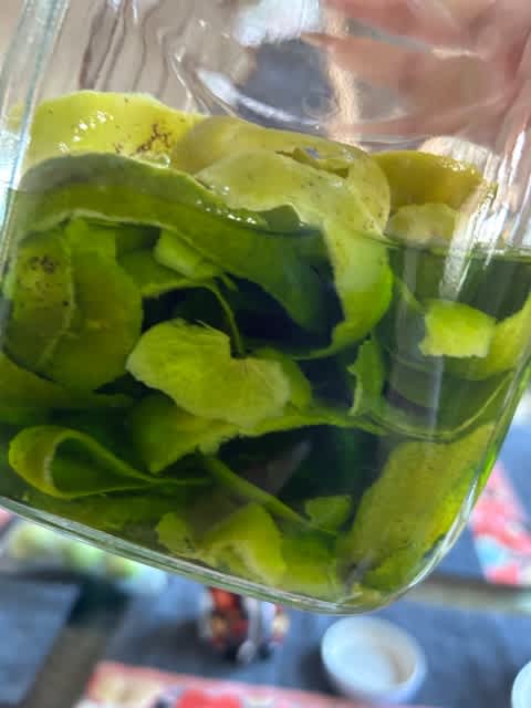 毎年、徳島から送っていただく酢橘で今年は娘が皮をウォッカに一晩つけて氷砂糖を溶かして作る