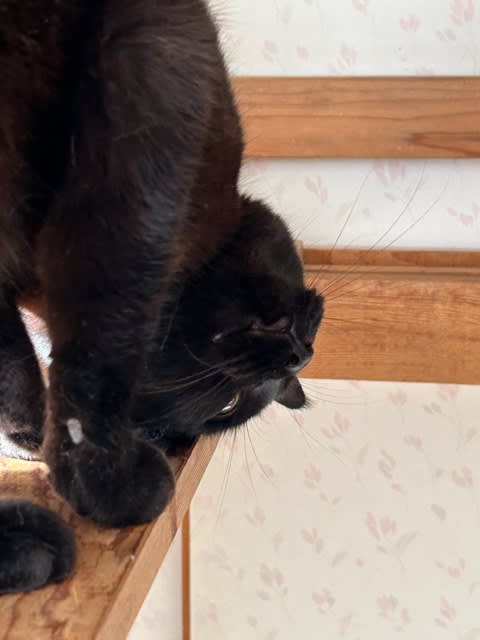 今朝はなんと窓を開けてから3秒でファンヒーターの前に戻っていきました。