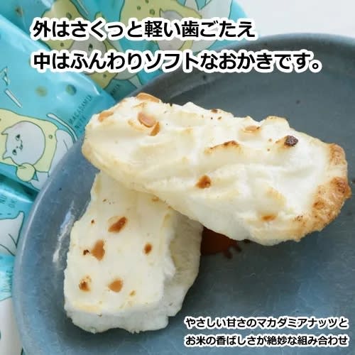 もちの香りも香ばしいフワフワおかきに砕いたマカダミアを混ぜ込んだ