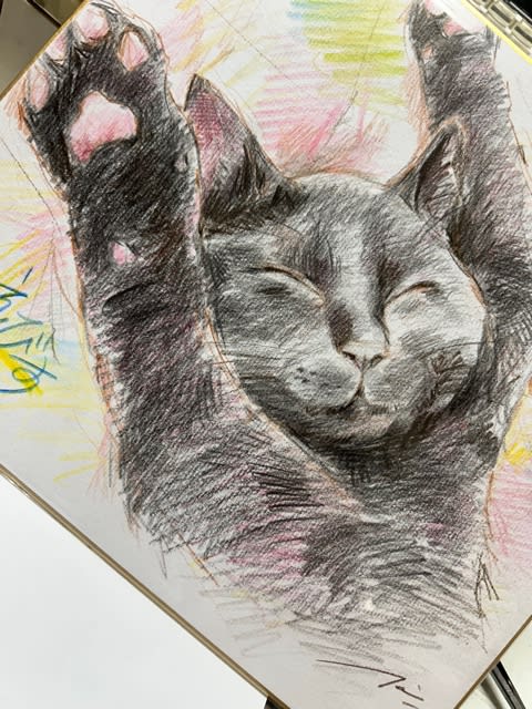 いかめち、入賞したでっち! 猫談議 2025.03.092025.08.16 和歌山近鉄で「猫の日」のイベントとして開催されていたフォトコンテスト、 にゃんとうちのいかめちえびすが入賞しました。 ご褒美に、似顔絵作家さんに絵を描いていただけるということで… 昨日受け取りに行ってきました。 ばんにゃ~い!! 今日は良いお天気で、庭の桜も満開です、 今年はどうかな、サクランボ ボクは朝から、どうやって草と闘うか、思案中。 こうやって見ると、やっぱりKILIに似ているね。。。