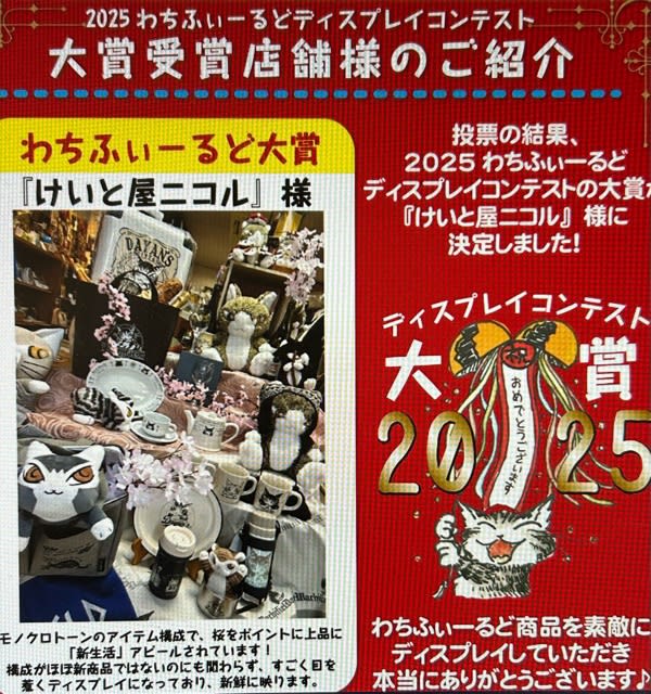 毎年恒例のわちふぃーるどディスプレイコンテストで大賞をいただきました。