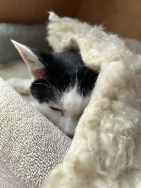 痩せっぽち短毛のますこは子猫と同じくらいの寒がりで、
