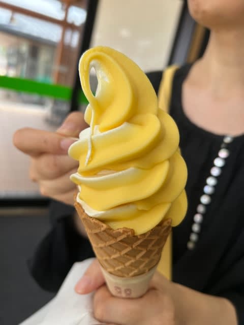 今日のお昼は新しく出来た「よってって」で食べたみかんと濃厚バニラのソフトクリーム。